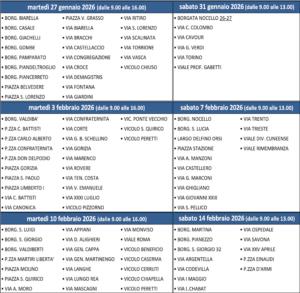 Ricordiamo che, per quanti fossero realmente impossibilitati a passare nella data relativa alla propria zona, gli operatori rimarranno a disposizione per il ritiro nelle giorante del 17 febbraio 2026 dalle 9.00 alle 16.00 e del 21 febbraio 2026 dalle 9.00 alle 13.00.